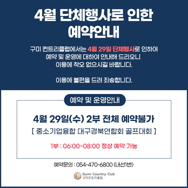 4월 단체행사로 인한 예약안내