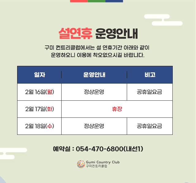 설연휴 운영안내