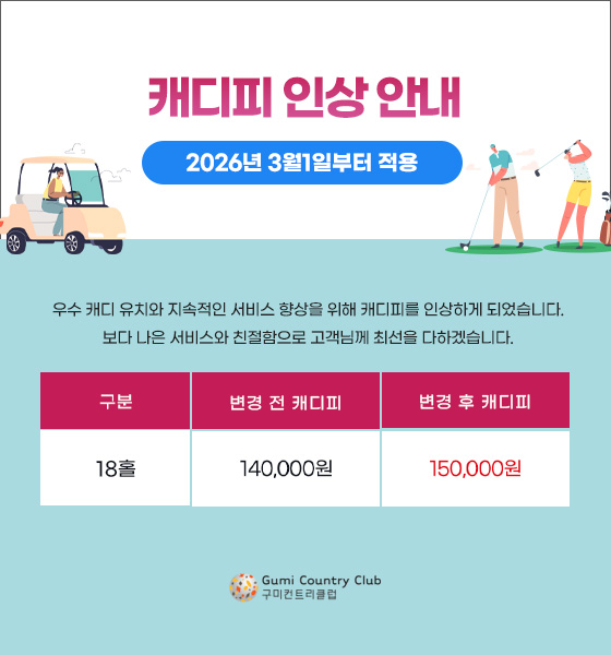 캐디피 인상 안내